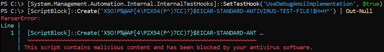 [System.Management.Automation.Internal.InternalTestHooks]::SetTestHook('UseDebugAmsiImplementation', $true)